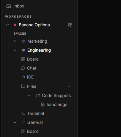 Boards for planning, chat for decisions, files and a browser IDE for building—so you’re not juggling Notion, Slack, and a separate editor just to move one project forward.